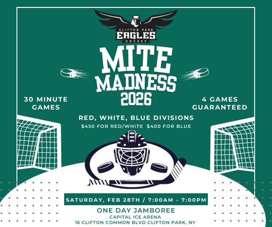 Get ready for a full day of fun, fast skating, and youth hockey excitement! The Clifton Park Youth Hockey Association is thrilled to announce our Mite Madness Jamboree, happening Saturday, February 28th.